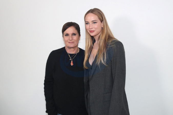 Maria Grazia Chiuri et Jennifer Lawrence posent backstage à la suite du Défilé de Mode Dior, Prêt-à-porter Automne / Hiver 2024-2025 dans le cadre de la Fashion Week de Paris, France, le 27 Fevrier 2024. © Bertrand Rindoff / Bestimage Greetings of the Dior Womenswear Fall / Winter 2024-2025 show as part of Paris Fashion Week on February 27, 2024 in Paris, France