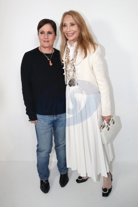 Maria Grazia Chiuri et Marisa Berenson posent backstage à la suite du Défilé de Mode Dior, Prêt-à-porter Automne / Hiver 2024-2025 dans le cadre de la Fashion Week de Paris, France, le 27 Fevrier 2024. © Bertrand Rindoff / Bestimage Greetings of the Dior Womenswear Fall / Winter 2024-2025 show as part of Paris Fashion Week on February 27, 2024 in Paris, France