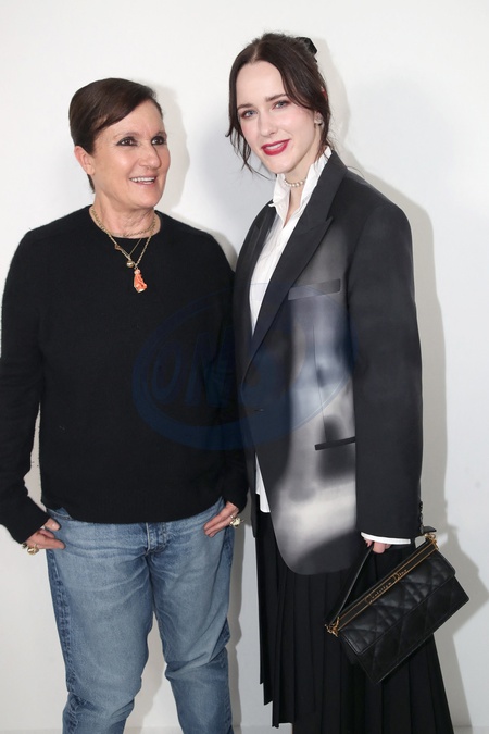 Maria Grazia Chiuri et Rachel Brosnahan posent backstage à la suite du Défilé de Mode Dior, Prêt-à-porter Automne / Hiver 2024-2025 dans le cadre de la Fashion Week de Paris, France, le 27 Fevrier 2024. © Bertrand Rindoff / Bestimage Greetings of the Dior Womenswear Fall / Winter 2024-2025 show as part of Paris Fashion Week on February 27, 2024 in Paris, France
