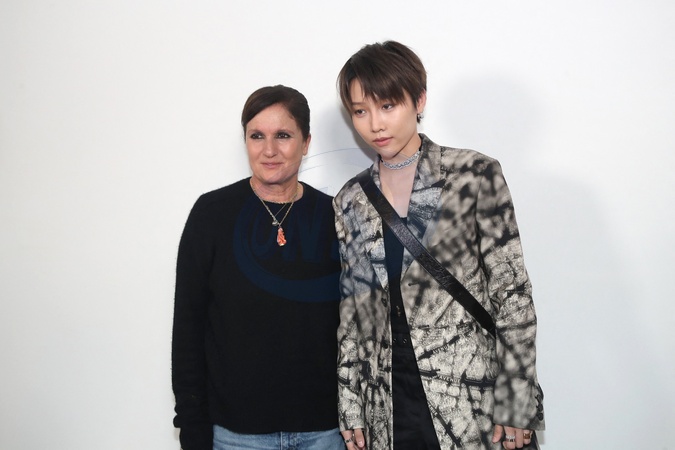 Maria Grazia Chiuri et Liu Yuxin posent backstage à la suite du Défilé de Mode Dior, Prêt-à-porter Automne / Hiver 2024-2025 dans le cadre de la Fashion Week de Paris, France, le 27 Fevrier 2024. © Bertrand Rindoff / Bestimage Greetings of the Dior Womenswear Fall / Winter 2024-2025 show as part of Paris Fashion Week on February 27, 2024 in Paris, France