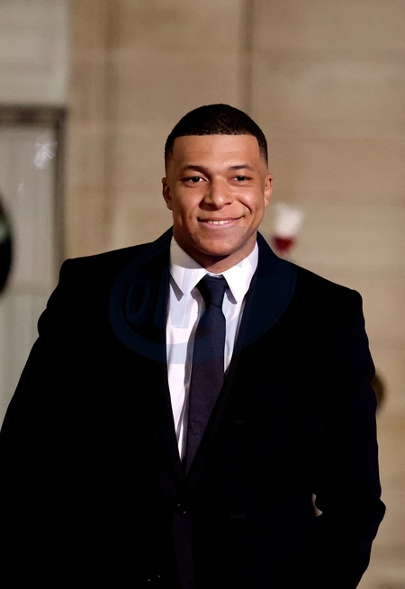 Kylian Mbappé - Arrivées au dîner d'état en l'honneur de l'Emir du Qatar au palais présidentiel de l'Elysée à Paris le 27 février 2024. © Dominique Jacovides / Bestimage Arrivals at official dinner on the sidelines of the state visit of Emir of Qatar at the Elysee Palace in Paris, France on February 27, 2024