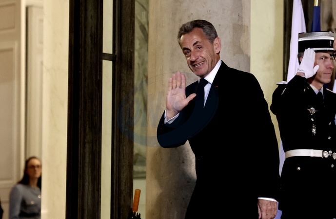 Nicolas Sarkozy - Arrivées au dîner d'état en l'honneur de l'Emir du Qatar au palais présidentiel de l'Elysée à Paris le 27 février 2024. © Dominique Jacovides / Bestimage Arrivals at official dinner on the sidelines of the state visit of Emir of Qatar at the Elysee Palace in Paris, France on February 27, 2024
