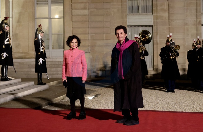 Jack Lang et sa femme Monique - Arrivées au dîner d'état en l'honneur de l'Emir du Qatar au palais présidentiel de l'Elysée à Paris le 27 février 2024. © Dominique Jacovides / Bestimage Arrivals at official dinner on the sidelines of the state visit of Emir of Qatar at the Elysee Palace in Paris, France on February 27, 2024
