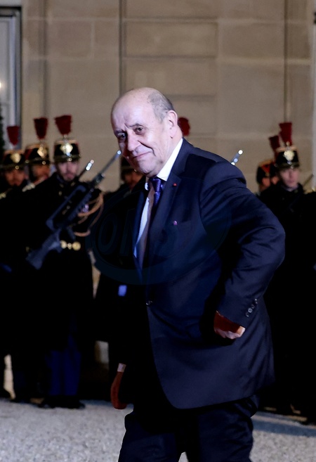 Jean-Yves Le Drian - Arrivées au dîner d'état en l'honneur de l'Emir du Qatar au palais présidentiel de l'Elysée à Paris le 27 février 2024. © Dominique Jacovides / Bestimage Arrivals at official dinner on the sidelines of the state visit of Emir of Qatar at the Elysee Palace in Paris, France on February 27, 2024