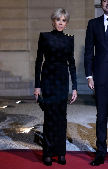 Brigitte Macron - Arrivées au dîner d'état en l'honneur de l'Emir du Qatar au palais présidentiel de l'Elysée à Paris le 27 février 2024. © Dominique Jacovides / Bestimage Arrivals at official dinner on the sidelines of the state visit of Emir of Qatar at the Elysee Palace in Paris, France on February 27, 2024