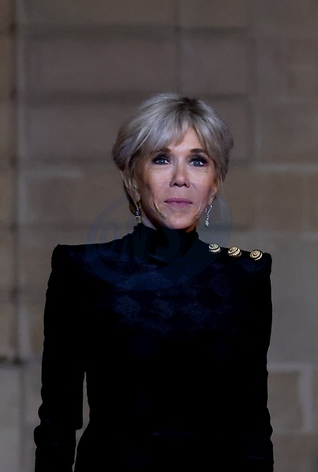 Brigitte Macron - Arrivées au dîner d'état en l'honneur de l'Emir du Qatar au palais présidentiel de l'Elysée à Paris le 27 février 2024. © Dominique Jacovides / Bestimage Arrivals at official dinner on the sidelines of the state visit of Emir of Qatar at the Elysee Palace in Paris, France on February 27, 2024