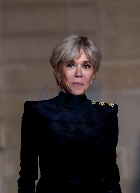 Brigitte Macron - Arrivées au dîner d'état en l'honneur de l'Emir du Qatar au palais présidentiel de l'Elysée à Paris le 27 février 2024. © Dominique Jacovides / Bestimage Arrivals at official dinner on the sidelines of the state visit of Emir of Qatar at the Elysee Palace in Paris, France on February 27, 2024