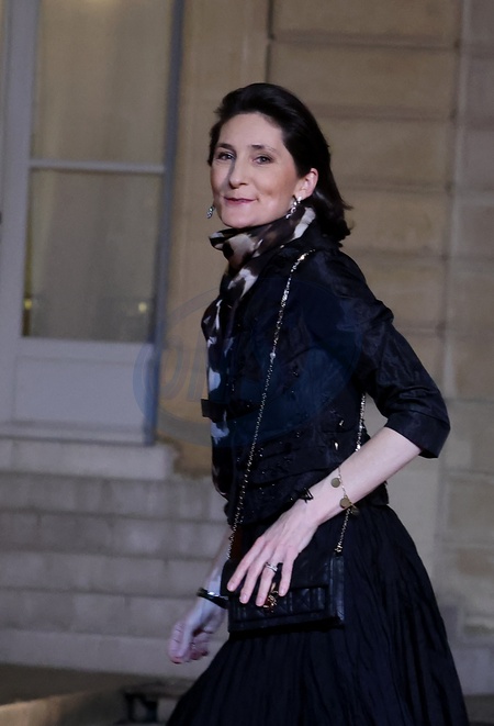 Amélie Oudéa-Castéra, Ministre des Sports et des Jeux Olympiques et Paralympiques - Arrivées au dîner d'état en l'honneur de l'Emir du Qatar au palais présidentiel de l'Elysée à Paris le 27 février 2024. © Dominique Jacovides / Bestimage Arrivals at official dinner on the sidelines of the state visit of Emir of Qatar at the Elysee Palace in Paris, France on February 27, 2024