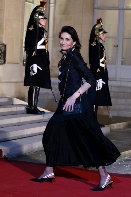 Amélie Oudéa-Castéra, Ministre des Sports et des Jeux Olympiques et Paralympiques - Arrivées au dîner d'état en l'honneur de l'Emir du Qatar au palais présidentiel de l'Elysée à Paris le 27 février 2024. © Dominique Jacovides / Bestimage Arrivals at official dinner on the sidelines of the state visit of Emir of Qatar at the Elysee Palace in Paris, France on February 27, 2024