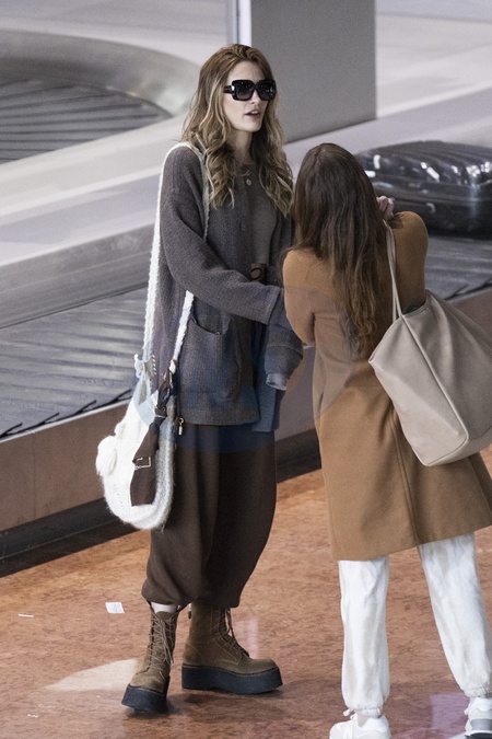 Exclusif - Paris Jackson arrive à l'aéroport de Paris-Charles de Gaulle (CDG) lors de la semaine de la mode femme automne/hiver 2024-2025 (PFW) le 27 février 2024. Exclusive - For Germany call for price - Paris Jackson arrives at Paris-Charles de Gaulle Airport (CDG) during Women's Fashion Week Fall/Winter 2024-2025 (PFW) on February 27, 2024.