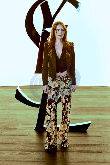 Lily Collins au photocall du défilé Saint Laurent collection femme automne/hiver 2024-2025 lors de la fashion week à Paris (PFW) le 27 février 2024. © Olivier Borde / Bestimage Celebs at Saint Laurent Womenswear Fall/Winter 2024-2025 show as part of Paris Fashion Week on February 27, 2024 in Paris, France.