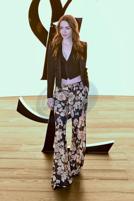 Lily Collins au photocall du défilé Saint Laurent collection femme automne/hiver 2024-2025 lors de la fashion week à Paris (PFW) le 27 février 2024. © Olivier Borde / Bestimage Celebs at Saint Laurent Womenswear Fall/Winter 2024-2025 show as part of Paris Fashion Week on February 27, 2024 in Paris, France.