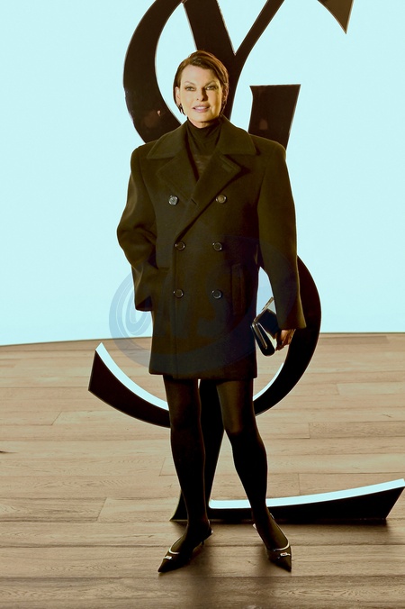 Linda Evangelista au photocall du défilé Saint Laurent collection femme automne/hiver 2024-2025 lors de la fashion week à Paris (PFW) le 27 février 2024. © Olivier Borde / Bestimage Celebs at Saint Laurent Womenswear Fall/Winter 2024-2025 show as part of Paris Fashion Week on February 27, 2024 in Paris, France.