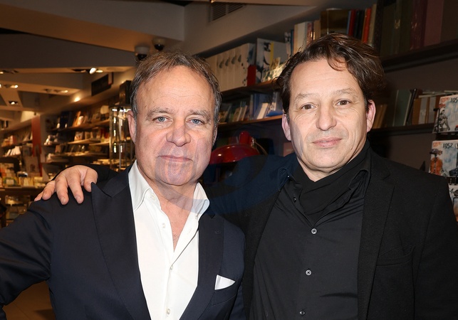 Exclusif - Fabien Lecœuvre et Mischa Aznavour - La Poste dévoile un timbre à l'effigie de Charles Aznavour à l'occasion du centenaire de la naissance de l'artiste, réalisé par le peintre Hom Nguyen au Carré d'encre à Paris le 27 février 2024. Le plus illustre représentant de la communauté arménienne de France, décédé en octobre 2018, sera représenté sur un timbre émis en avant-première au salon Paris-Philex 2024, à l'occasion du centenaire de sa naissance le 22 mai prochain. Le timbre, crée par H. Nguyen sera vendu en avant-première du jeudi 30 mai au samedi 1er juin lors de ce salon qui se tiendra Porte de Versailles à Paris. Tiré à plus de 600 000 exemplaires, il sera ensuite disponible à partir du 3 juin 2024 dans certains bureaux de poste par abonnement ou par correspondance. © Coadic Guirec/Bestimage Exclusive - For Germany call for price - No Web For Belgium and Switzerland - La Poste unveils a stamp bearing the effigy of Charles Aznavour on the occasion of the centenary of the artist's birth, produced by the painter Hom Nguyen at Carré d'encre in Paris on February 27, 2024. The most illustrious representative of the Armenian community of France, who died in October 2018, will be represented on a stamp issued in preview at the Paris-Philex 2024 fair, on the occasion of the centenary of his birth on May 22. The stamp, created by H. Nguyen, will be sold in preview from Thursday May 30 to Saturday June 1 during this show which will be held at Porte de Versailles in Paris. With a print run of more than 600,000 copies, it will then be available from June 3, 2024 in certain post offices by subscription or by mail.