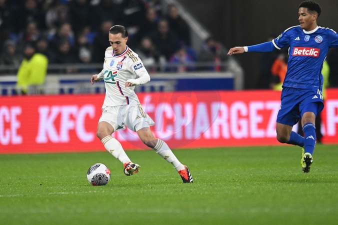 Maxence Caqueret (lyon) - Match de quart de finale de la Coupe de France 2024 "Lyon - Strasbourg (0-0 tab 4-3)" au Groupama Stadium, le 27 février 2024. Quarter-final match of the Coupe de France 2024 "Lyon - Strasbourg (0-0 tab 4-3)" at Groupama Stadium, February 27, 2024.