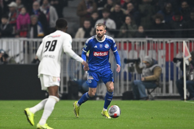 Lucas Perrin (strasbourg) - Match de quart de finale de la Coupe de France 2024 "Lyon - Strasbourg (0-0 tab 4-3)" au Groupama Stadium, le 27 février 2024. Quarter-final match of the Coupe de France 2024 "Lyon - Strasbourg (0-0 tab 4-3)" at Groupama Stadium, February 27, 2024.