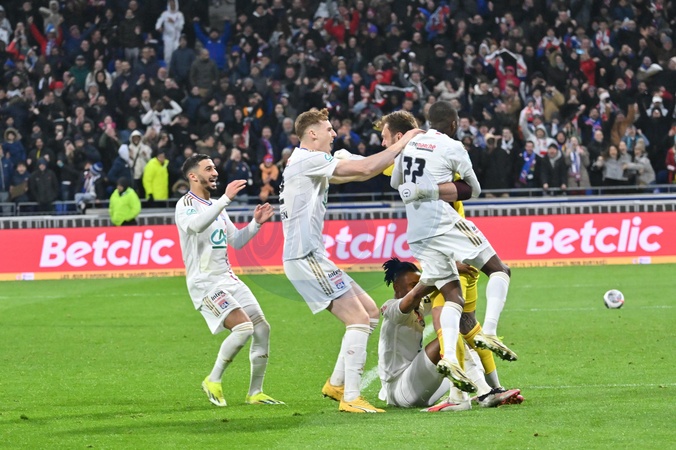 Match de quart de finale de la Coupe de France 2024 "Lyon - Strasbourg (0-0 tab 4-3)" au Groupama Stadium