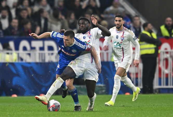 Match de quart de finale de la Coupe de France 2024 "Lyon - Strasbourg (0-0 tab 4-3)" au Groupama Stadium