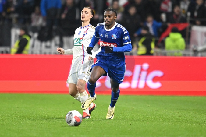 Junior Mwanga (strasbourg) - Match de quart de finale de la Coupe de France 2024 "Lyon - Strasbourg (0-0 tab 4-3)" au Groupama Stadium, le 27 février 2024. Quarter-final match of the Coupe de France 2024 "Lyon - Strasbourg (0-0 tab 4-3)" at Groupama Stadium, February 27, 2024.