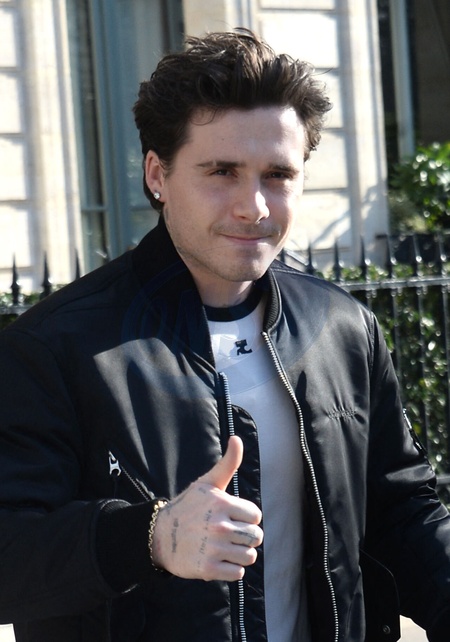 Brooklyn Beckham quitte l'hôtel restaurant "La Réserve" en marge de la fashion week femme automne/hiver 2024-2025 à Paris (PFW)