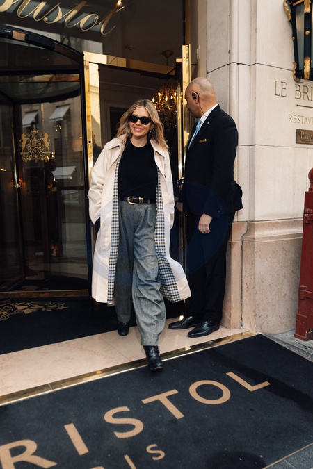 Sienna Miller sort de l'hôtel Bristol à Paris en marge de la fashion week collection femme automne / hiver 2024-2025 (PFW)