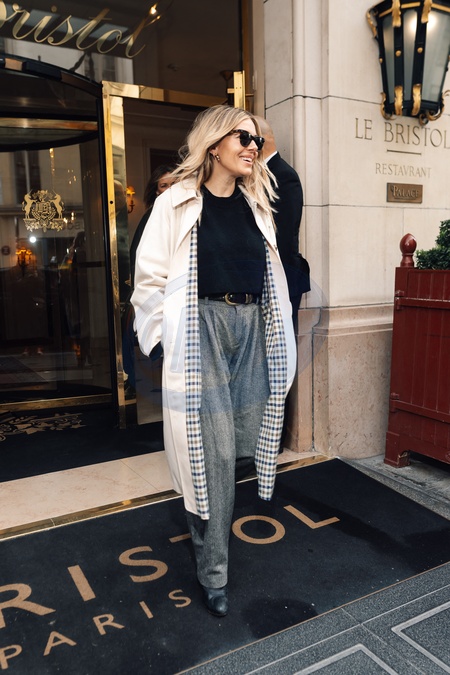 Sienna Miller sort de l'hôtel Bristol à Paris en marge de la fashion week collection femme automne / hiver 2024-2025 (PFW)