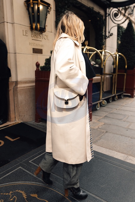 Sienna Miller sort de l'hôtel Bristol à Paris en marge de la fashion week collection femme automne / hiver 2024-2025 (PFW)
