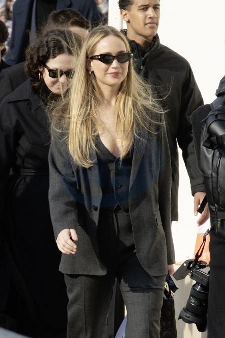 Jennifer Lawrence - Arrivées au défilé Christian Dior mode femme automne / hiver 2024-2025 lors de la Fashion Week de Paris (PFW) au jardin des Tuileries le 27 février 2024. © Marie Goujon / Panoramic / Bestimage Arrivals at the Christian Dior women's autumn/winter 2024-2025 fashion show during Paris Fashion Week (PFW) at the Tuileries Gardens on 27 February 2024.
