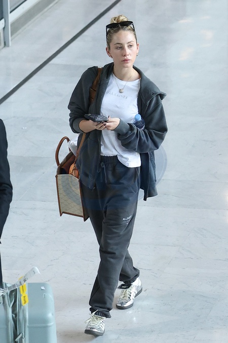 Alix Earle (gwiazda TikTok USA) przybywa na lotnisko Paryż-Charles de Gaulle (CDG) podczas Tygodnia Mody Kobiet jesień/zima 2024–2025 (PFW)