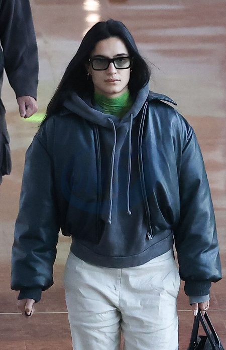 Isabela Grutman i jej mąż David przylatują na lotnisko Paryż-Charles de Gaulle (CDG) podczas Tygodnia Mody Damskiej Jesień/Zima 2024–2025 (PFW) w Paryżu