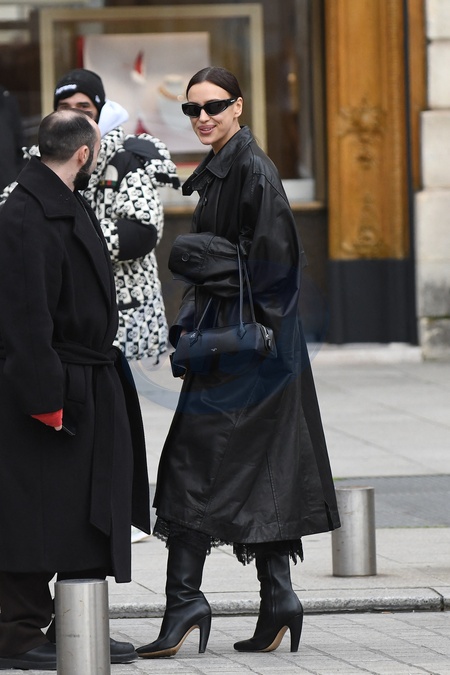 Irina Shayk aperçue Place Vendôme lors de la Fashion Week prêt-à-porter automne-hiver 2024/2025 à Paris, le 28 février 2024. Irina Shayk seen at Place Vendôme during Fall-Winter 2024/2025 Ready-to-Wear Fashion Week in Paris, February 28, 2024.