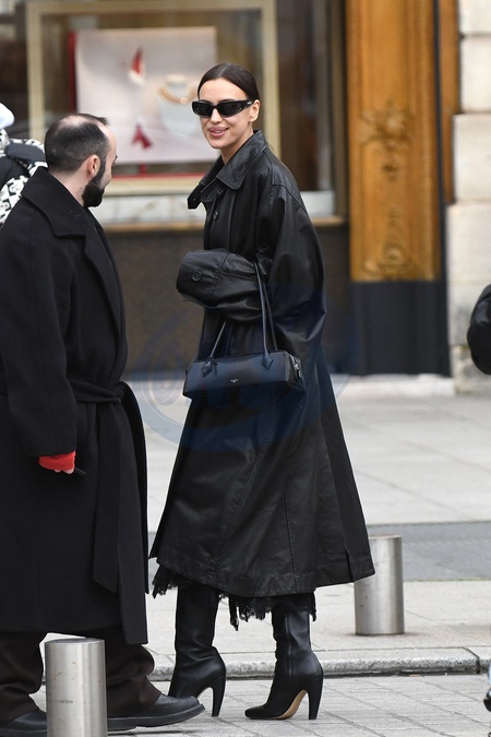 Irina Shayk aperçue Place Vendôme lors de la Fashion Week prêt-à-porter automne-hiver 2024/2025 à Paris, le 28 février 2024. Irina Shayk seen at Place Vendôme during Fall-Winter 2024/2025 Ready-to-Wear Fashion Week in Paris, February 28, 2024.
