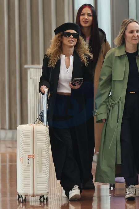 Exclusif - La chanteuse roumaine Ami arrive à l'aéroport de Paris-Charles de Gaulle (CDG) lors de la semaine de la mode femme automne/hiver 2024-2025 (PFW), à Roissy-en-France, France, le 28 février 2024. Exclusive - For Germany Call For Price - Romanian singer Ami arrives at Paris-Charles de Gaulle Airport (CDG) during Women's Fashion Week Fall/Winter 2024-2025 (PFW), in Roissy-en-France, France, on February 28, 2024.
