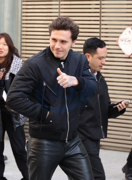 Brooklyn Beckham - Arrivées au défilé Courrèges mode femme automne / hiver 2024-2025 lors de la Fashion Week de Paris (PFW) au Carreau du Temple, à Paris, France, le 28 février 2024. © Denis Guignebourg/Bestimage Arrivals - Courrèges Womenswear Fall/Winter 2024-2025 show as part of Paris Fashion Week on February 28, 2024 in Paris, France.