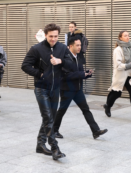 Brooklyn Beckham - Arrivées au défilé Courrèges mode femme automne / hiver 2024-2025 lors de la Fashion Week de Paris (PFW) au Carreau du Temple, à Paris, France, le 28 février 2024. © Denis Guignebourg/Bestimage Arrivals - Courrèges Womenswear Fall/Winter 2024-2025 show as part of Paris Fashion Week on February 28, 2024 in Paris, France.