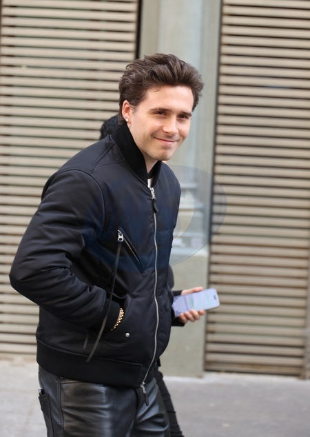 Brooklyn Beckham - Arrivées au défilé Courrèges mode femme automne / hiver 2024-2025 lors de la Fashion Week de Paris (PFW) au Carreau du Temple, à Paris, France, le 28 février 2024. © Denis Guignebourg/Bestimage Arrivals - Courrèges Womenswear Fall/Winter 2024-2025 show as part of Paris Fashion Week on February 28, 2024 in Paris, France.