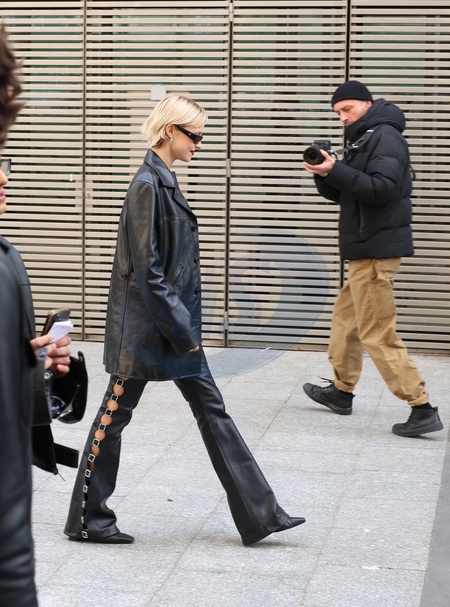 rrivées au défilé Courrèges mode femme automne / hiver 2024-2025 lors de la Fashion Week de Paris (PFW) au Carreau du Temple