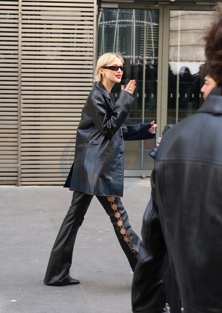 rrivées au défilé Courrèges mode femme automne / hiver 2024-2025 lors de la Fashion Week de Paris (PFW) au Carreau du Temple