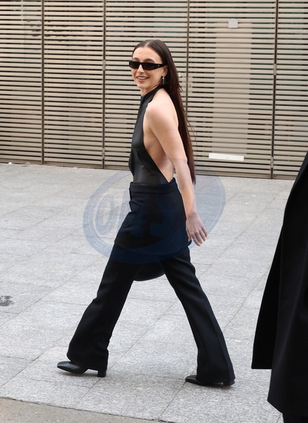 rrivées au défilé Courrèges mode femme automne / hiver 2024-2025 lors de la Fashion Week de Paris (PFW) au Carreau du Temple