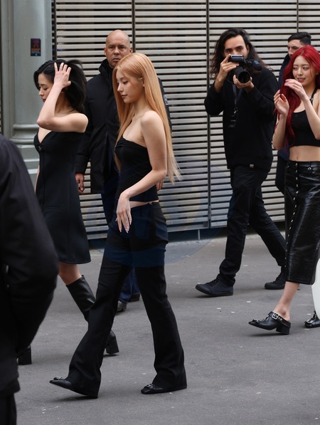 Chaeryeong, Yeji et Yuna du groupe sud-coréen Itzy - Arrivées au défilé Courrèges mode femme automne / hiver 2024-2025 lors de la Fashion Week de Paris (PFW) au Carreau du Temple, à Paris, France, le 28 février 2024. © Denis Guignebourg/Bestimage Arrivals - Courrèges Womenswear Fall/Winter 2024-2025 show as part of Paris Fashion Week on February 28, 2024 in Paris, France.