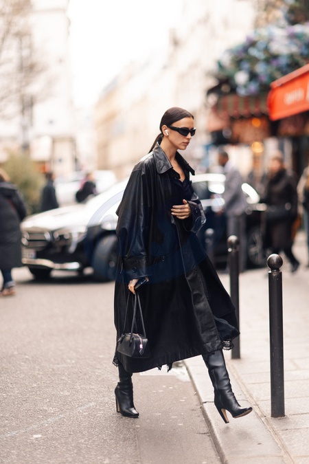 Irina Shayk dans les rues parisiennes lors de la semaine de la mode femme automne/hiver 2024-2025 (PFW) à Paris, France, le 28 février 2024. Model Irina Shayk steps out in a stylish all black ensemble during Paris Fashion Week. Pictured: Irina Shayk