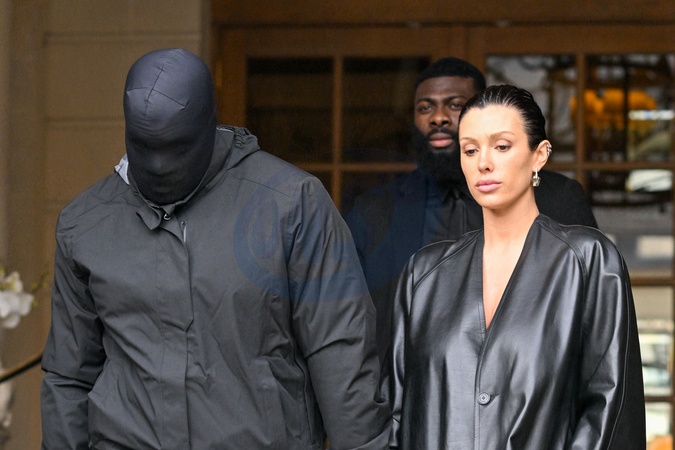 Kanye West (Ye) et sa femme Bianca Censori à la sortie de l'hôtel Ritz lors de la semaine de la mode femme automne/hiver 2024-2025 (PFW)