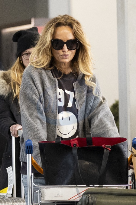 Exclusif - Adriana Karembeu arrive à l'aéroport de Paris-Charles de Gaulle (CDG) lors de la semaine de la mode femme automne/hiver 2024-2025 (PFW), à Roissy-en-France, France, le 28 février 2024. Exclusive - For Germany Call For Price - Adriana Karembeu arrives at Paris-Charles de Gaulle Airport (CDG) during the Fashion Week Fall/Winter 2024-2025 (PFW), in Roissy-en-France, France, on February 28, 2024.