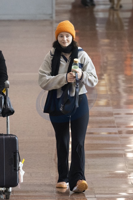 Exclusif - Thomasin McKenzie arrive à l'aéroport de Paris-Charles de Gaulle (CDG) lors de la semaine de la mode femme automne/hiver 2024-2025 (PFW)