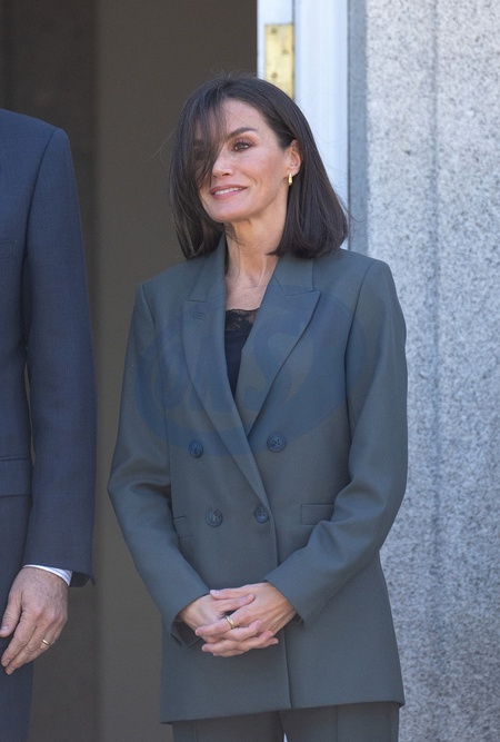 Le roi Felipe VI et la reine Letizia d’Espagne lors de la réception avec le président du Paraguay Santiago Pena et sa femme Leticia Ocampos au palais de la Zarzuela à Madrid