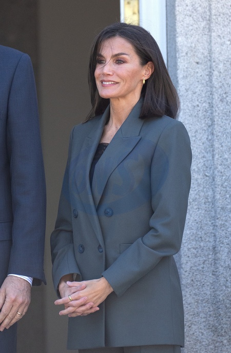 Le roi Felipe VI et la reine Letizia d’Espagne lors de la réception avec le président du Paraguay Santiago Pena et sa femme Leticia Ocampos au palais de la Zarzuela à Madrid