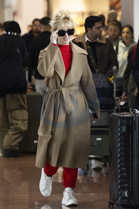 Exclusif - Kathryn Newton arrive à l'aéroport de Paris-Charles de Gaulle (CDG) lors de la semaine de la mode femme automne/hiver 2024-2025 (PFW), à Roissy-en-France, France, le 28 février 2024. Exclusive - For Germany Call For Price - Kathryn Newton arrives at Paris-Charles de Gaulle Airport (CDG) during the Fashion Week Fall/Winter 2024-2025 (PFW), in Roissy-en-France, France, on February 28, 2024.