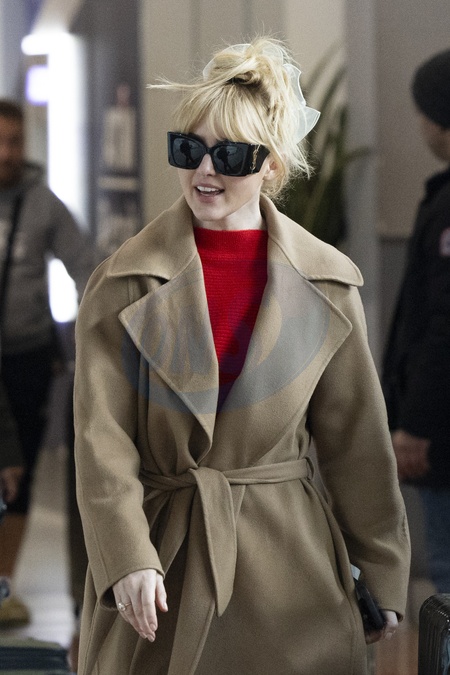 Exclusif - Kathryn Newton arrive à l'aéroport de Paris-Charles de Gaulle (CDG) lors de la semaine de la mode femme automne/hiver 2024-2025 (PFW), à Roissy-en-France, France, le 28 février 2024. Exclusive - For Germany Call For Price - Kathryn Newton arrives at Paris-Charles de Gaulle Airport (CDG) during the Fashion Week Fall/Winter 2024-2025 (PFW), in Roissy-en-France, France, on February 28, 2024.