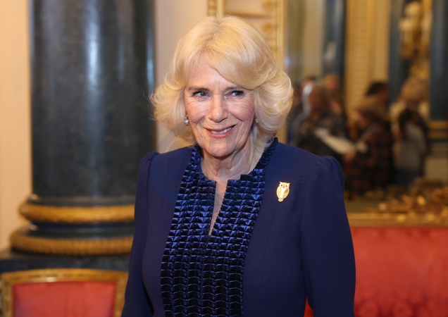 Queen Camilla smiles during a reception for the BBC's 500 Words Finalists at Buckingham Palace on February 28, 2024 in London, England. NO UK USE FOR 48 HOURS, Credit:Avalon.red / Avalon