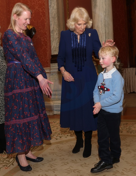 Queen Camilla speaks with a young guest during a reception for the BBC's 500 Words Finalists at Buckingham Palace on February 28, 2024 in London, England. NO UK USE FOR 48 HOURS, Credit:Avalon.red / Avalon